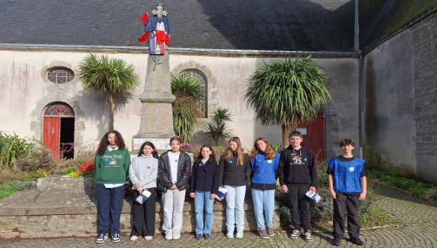 Comme chaque année, des élèves de 3e du collège de Rhuys ont participé aux collectes en faveur du Bleuet de France et ont participé à la cérémonie du 11 Novembre à Surzur. Cette année est marquée par le centenaire du Bleuet de France, association caritative fondée en 1925 après la première guerre mondiale pour venir en aide aux anciens combattants.