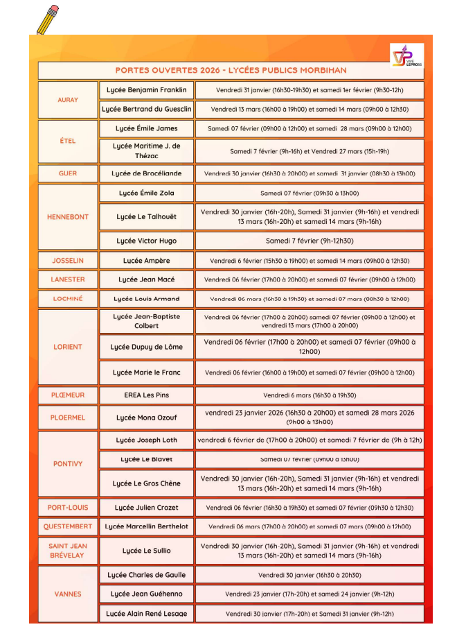 PORTES OUVERTES 2026 - LYCEES PUBLICS DU MORBIHAN