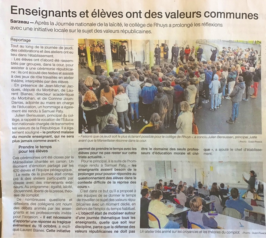 Cette journée est pour nous « un symbole de la capacité de l’Ecole à montrer sa détermination dans son rôle d’éducation à la citoyenneté, pour permettre aux élèves de développer leur créativité, leur esprit critique, de cultiver les connaissances pour habiter le monde de demain, en faisant vivre quotidiennement ces valeurs dans l’Ecole et hors de ses murs », selon les mots de M. Bensussan, Principal du Collège.
