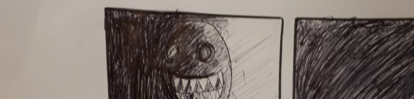 Les 4e ont travaillé sur le clair obscur et ont « usé » leur stylo bic noir avec un travail de hachures pour répondre à l’incitation : MON MONSTRE SORT DE L’OBSCURITÉ.